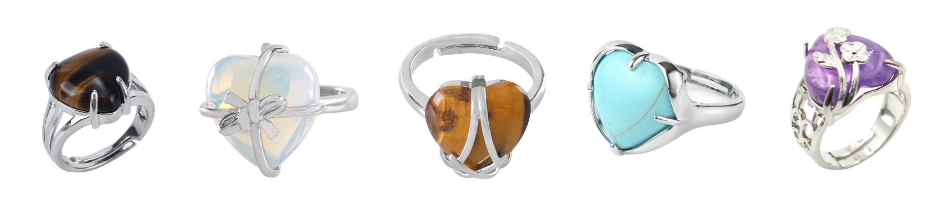 Natural Gemstone Love Heart Metal Rings for Women Men