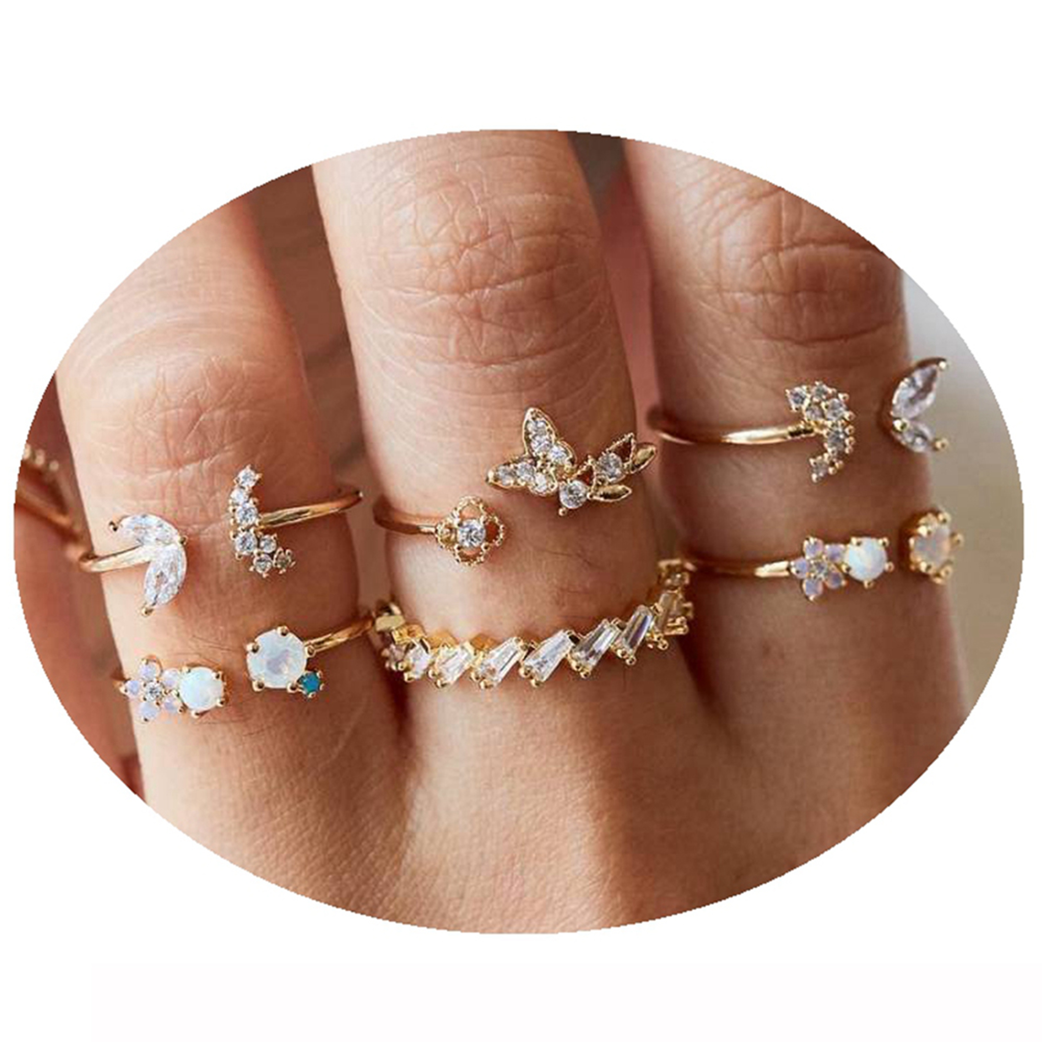 - Ring Set For Women: These stackable ring set are great,provide a variety of different collocation,match with suitable apparel for different occasion,variety rhinestone embeded on them,make you charming and attractive.