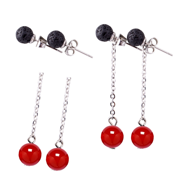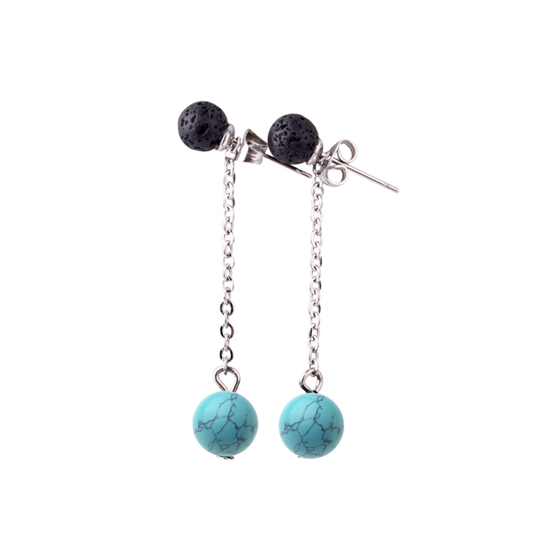 (6MM lava Stone Earring Stud + 8MM natural Stone )