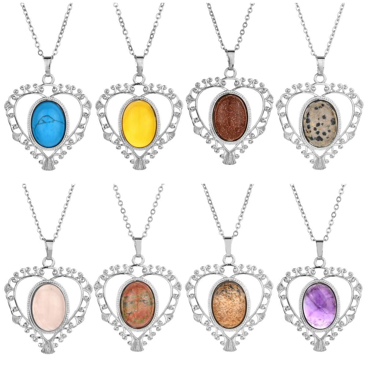 Silver Love Heart Pendant 35x46mm for Making jewelry necklace with 15x18MM natural Gemstone CABs